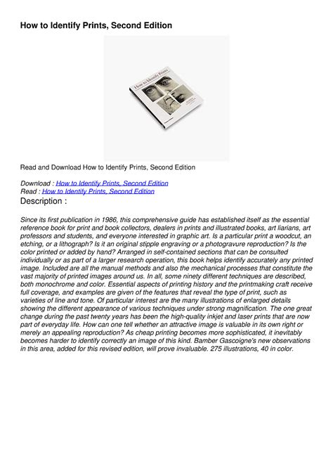 File Name: How To Identify Prints Second Edition.pdf Size: 6352 KB Type: PDF, ePub, eBook |